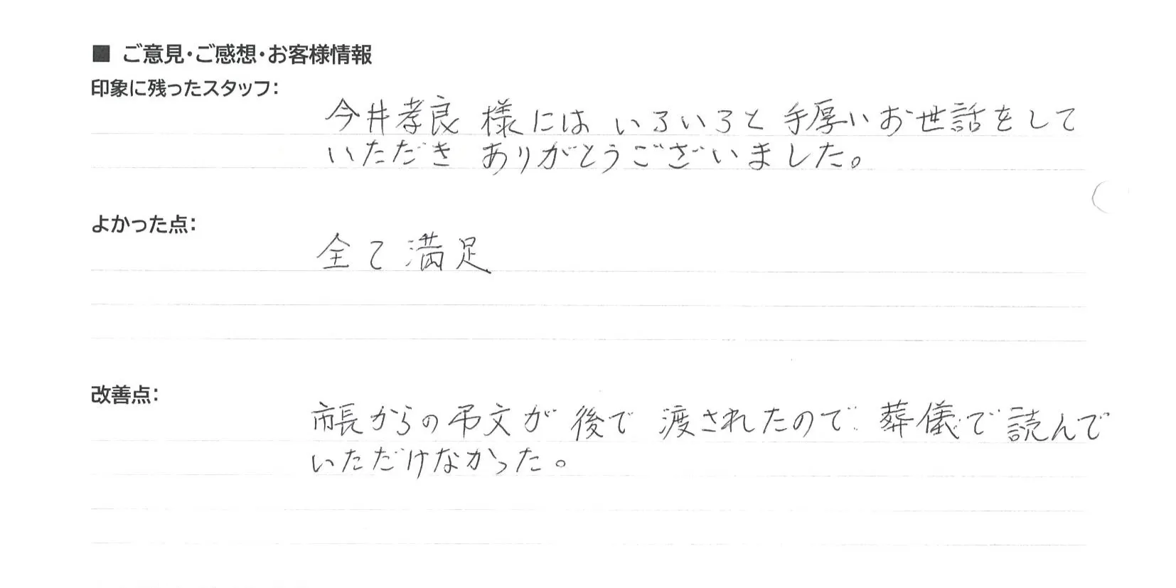 市長からの弔文が後で渡されたので、葬儀で読んでいただけなかった。