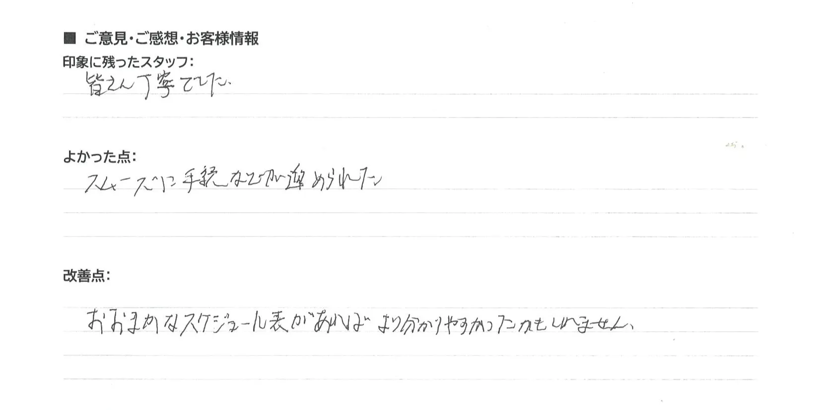『皆さん丁寧でした』『スムーズに手続きが進められた』とのお言葉をいただき、スタッフ一同、心より嬉しく思っております。